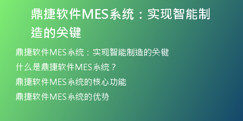 曼探软件MES系统:实现智能制造的关键 在当前日益竞争激烈的制造行业中,智能制造成为实现企业高效生产和持续发展的关键。为了满足市场需求,许多企业都在寻求一种可以提高生产效率、降低成本并实现自动化管理的解决方案。曼探软件MES系统正是这样一种能够实现智能制造的重要工具。什么是曼探软件MES系统?曼探软...
